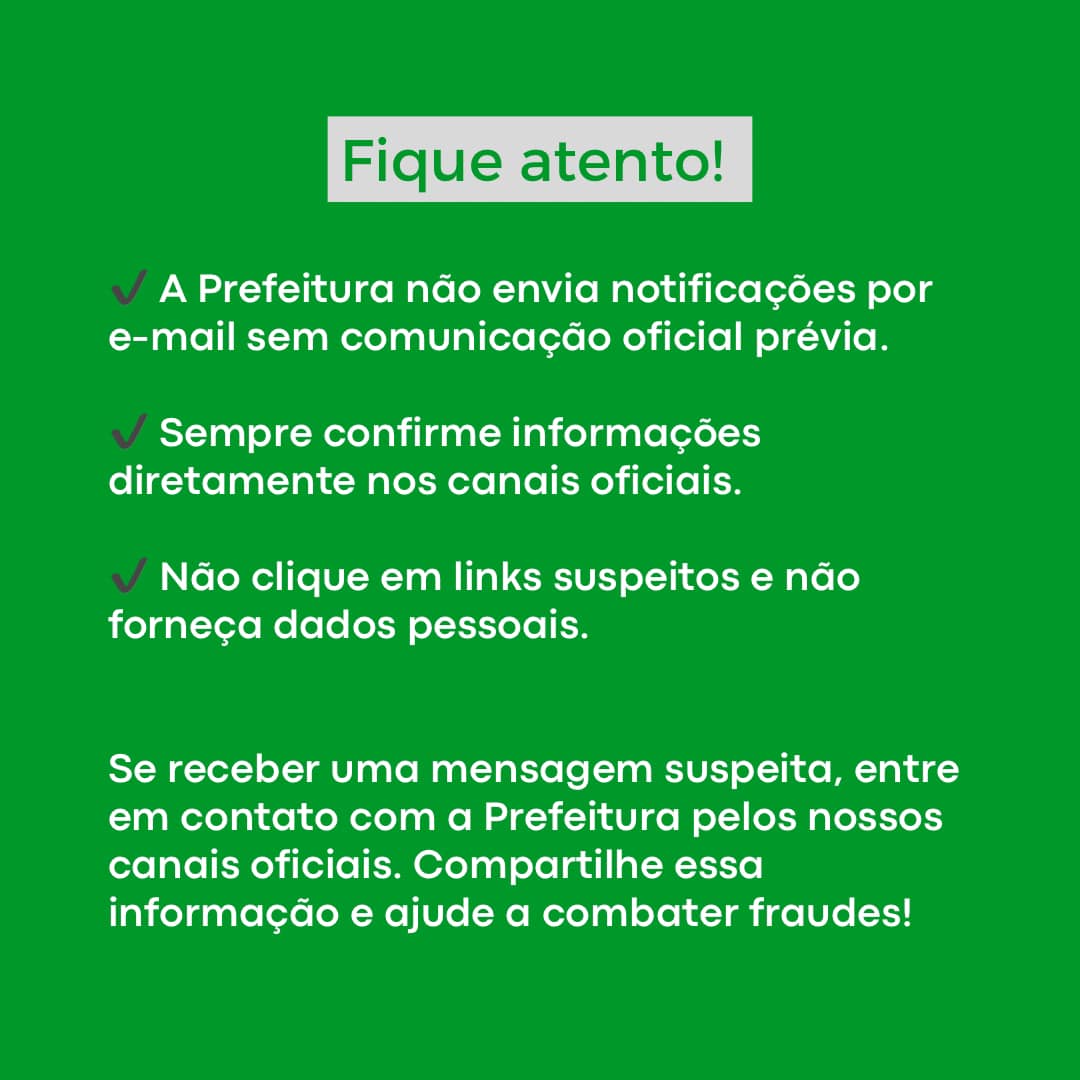 A Prefeitura não envia notificações por e-mail sem comunicação oficial prévia.