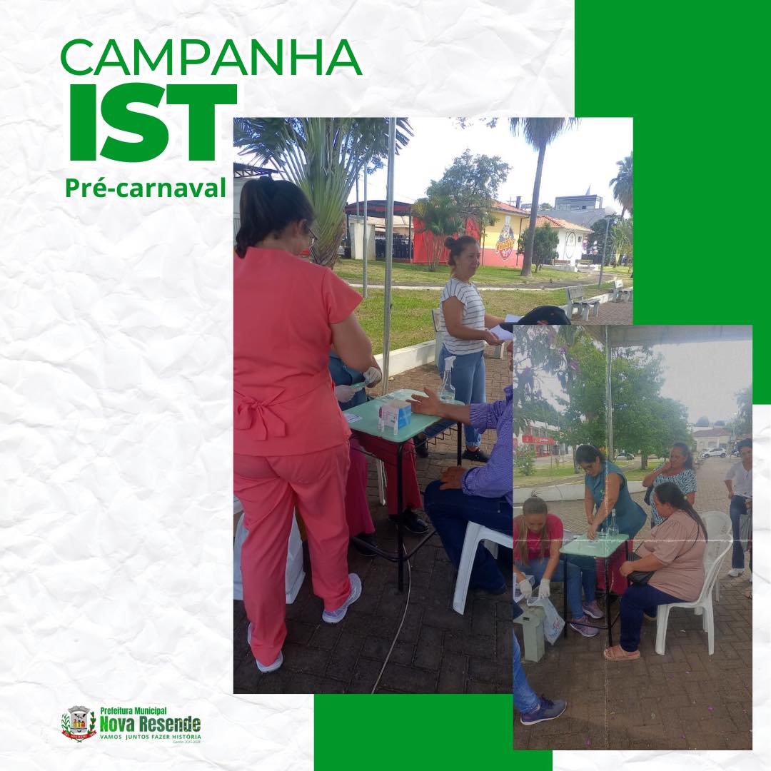 Campanha de prevenção de IST pré carnaval, fazendo teste rápido praça, entrega de preservativos.